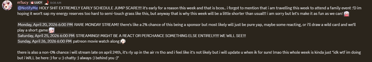 >>111234812I only have the time to follow one streamer, but there are a bunch of people that I root for nonetheless, and one of those is Pia. She's a hard worker despite all the shit she had to deal with, and hard work deserves to be rewarded