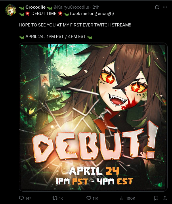 >>111231994>Kairyu has got to be already there, right?We'll see in 3 months and 1 week. (but i guess yes if she does it regularly) https://x.com/KairyuCrocodile/status/2045925394684219682