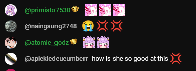 >>111242257Yeah, Uruka is someone you can clearly see is actually a virgin. As a virgin myself, I can notice things like that. She can be annoying sometimes, so it's a valid reason for men to stay away from her. But she feels validated by the random chatters, which is good for her, women need that.