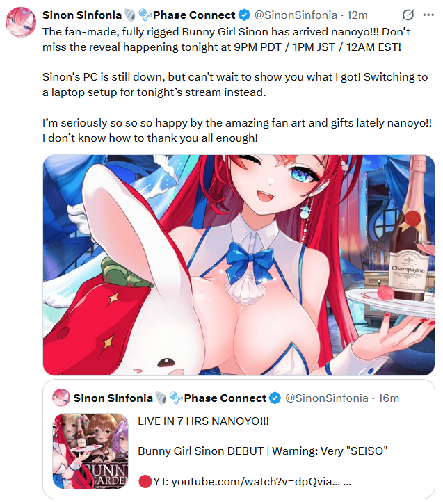 ▼ Phase Connect LinksOfficial Website: https://phase-connect.comOfficial Schedule: https://schedule.phase-connect.comOfficial Twitter: https://x.com/PhaseConnect | https://x.com/PhaseConnectJPOfficial Character References: https://rentry.org/pcgreferencesOfficial Twitch Archive Channels: https://rentry.org/pcgtwitcharchiveUnofficial Phase Connect Archives: https://rentry.org/pcgunofficialarchive––––––––––––––––––––––––––––––––––◆【Lia】https://x.com/rinkouashelia | https://youtube.com/RinkouAshelia | https://twitch.tv/asheliarinkou◆【Utatane Nasa】転寝ナサ (JP) https://x.com/UtataneNasa | https://youtube.com/UtataneNasa | https://twitch.tv/utatanenasa◆【Hakushika Iori】白鹿いおり (JP + EN) https://x.com/hakushikaiori | https://youtube.com/HakushikaIori | https://twitch.tv/iorihakushika◆【Fujikura Uruka】https://x.com/fujikurauruka | https://youtube.com/FujikuraUruka | https://twitch.tv/fujikurauruka◆【Shisui Michiru】紫翠みちる (JP) https://x.com/shisuimichiru | https://youtube.com/ShisuiMichiru | https://twitch.tv/michiru_shisui◆【Tenma Maemi】https://x.com/tenmamaemi | https://youtube.com/TenmaMaemi | https://twitch.tv/tenma◆【Pipkin Pippa】https://x.com/pipkinpippa | https://youtube.com/PipkinPippa | https://twitch.tv/pippa––––––––––––––––––––––––––––––––––◆【Kaneko Lumi】https://x.com/kaneko_lumi | https://youtube.com/KanekoLumi | https://twitch.tv/kanekolumi◆【Fuura Yuri】[Terminated] https://x.com/AmarisYuri | Archive: https://youtube.com/@TheNationalFuuraYuriArchive◆【Dizzy Dokuro】https://x.com/dizzydokuro | https://youtube.com/@dizzydokuro | https://twitch.tv/dizzydokuro◆【Jelly Hoshiumi】https://x.com/jellyhoshiumi | https://youtube.com/@jellyhoshiumi | https://twitch.tv/jellyhoshiumi◆【Ember Amane】https://x.com/emberamane | https://youtube.com/@EmberAmane | https://twitch.tv/emberamane◆【Clio Aite】https://x.com/ClioAite | https://youtube.com/@ClioAite | https://twitch.tv/clioaite◆【MariMari_en】https://x.com/MARIMARI_EN | https://youtube.com/@MARIMARI_EN | https://twitch.tv/marimari_en◆【Eepy Sleepy】https://x.com/EepySleepyCh | https://youtube.com/@EepySleepyCh | https://twitch.tv/EepySleepy––––––––––––––––––––––––––––––––––◆【Remilia Nephys】https://x.com/Remilia_Nephys | https://youtube.com/RemiliaNephys | https://twitch.tv/remilianephys◆【Chisaka Airi】https://x.com/ChisakaAiri | https://youtube.com/ChisakaAiri | https://twitch.tv/chisakaairi◆【Amanogawa Shiina】https://x.com/AmanogawaShiina | https://youtube.com/AmanogawaShiina | https://twitch.tv/amanogawashiina◆【Himemiya Rie】https://x.com/HimemiyaRie | https://youtube.com/HimemiyaRie | https://twitch.tv/himemiyarie◆【Erina Makina】https://x.com/ErinaMakina | https://youtube.com/ErinaMakina | https://twitch.tv/erinamakina◆【Komachi Panko】https://x.com/komachipanko | https://youtube.com/KomachiPanko | https://twitch.tv/komachipanko––––––––––––––––––––––––––––––––––◆【Runie Ruse】https://x.com/RunieRuse | https://youtube.com/@RunieRuse | https://twitch.tv/RunieRuse◆【Eimi Isami】https://x.com/eimiisami | https://youtube.com/@eimiisami | https://twitch.tv/eimiisami◆【Muu Muyu】https://x.com/Muu_Muyu | https://youtube.com/@MuuMuyu | https://twitch.tv/MuuMuyu◆【Hikanari Hina】https://x.com/HikanariHina | https://youtube.com/@HikanariHina | https://twitch.tv/HikanariHina◆【Saya Sairroxs】[Hort] https://x.com/sayasairroxs | https://youtube.com/@sayasairroxs | https://twitch.tv/sayasairroxs––––––––––––––––––––––––––––––––––◆【Kannagi Loki】巫ロキ (JP) https://x.com/kannagiloki | https://youtube.com/@kannagiloki◆【Kokoromo Memory】[Phase Citizen] https://x.com/kokoromomemory | https://youtube.com/@kokoromomemory_ | https://twitch.tv/kokoromomemory◆【Gram Pico】倉夢ぴこ (JP) https://x.com/grampico_ | https://youtube.com/@grampico | https://twitch.tv/grampico◆【Ayase Yuu】絢世ユウ (JP) https://x.com/ayaseyuuu | https://youtube.com/@ayaseyuu | https://twitch.tv/ayaseyuu_◆【Kaminari Clara】[Graduated] https://x.com/kaminariclara_ | https://youtube.com/@kaminariclara | https://twitch.tv/kaminariclara––––––––––––––––––––––––––––––––––◆【Malice Evermore】https://x.com/MaliceEvermore | https://youtube.com/@maliceevermore | https://twitch.tv/maliceevermore◆【Nitya Nil】https://x.com/Nitya_Nil | https://youtube.com/@Nitya_Nil | https://twitch.tv/nitya_nil◆【Wilhelmina Frost】https://x.com/wilhelminafr0st | https://youtube.com/@wilhelminafrost | https://twitch.tv/wilhelminafrost◆【Bibi Biscuit】https://x.com/BibiBiscuitCh | https://youtube.com/@bibibiscuitch | https://twitch.tv/bibibiscuitch◆【Anya Nyabyss】https://x.com/AnyaNyabyss | https://youtube.com/@AnyaNyabyss | https://twitch.tv/anyanyabyss◆【Sinon Sinfonia】https://x.com/SinonSinfonia | https://youtube.com/@SinonSinfonia | https://twitch.tv/sinonsinfoniaPrevious Thread: >>111233375