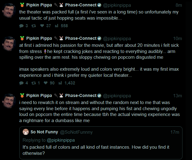 >>111250991hahahaha she watched it in a theater full of cringe ass Joker fans and now it's going to taint her perception of the movie.