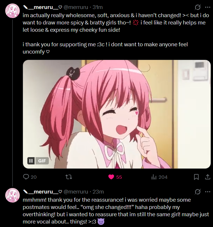 >>111262304the problem is that if you really like your oshi it's difficult for you to actually call her out especially if you know she'll react badly, but also not supporting her when you normally support her everywhere else looks like calling her out anyway, so a lot of these people just support it vocally and then slowly phase themselves out of existence over time