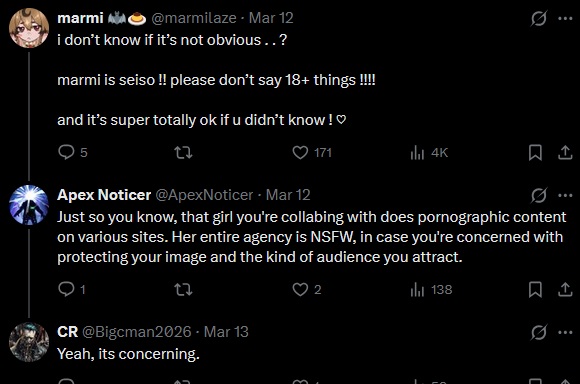>>111271890i need this prude out of my bat wife's replies. he's bound to go schizo when marm doesn't cut ties with nsfw creators