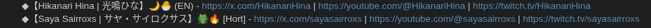 ▼ Phase Connect LinksOfficial Website: https://phase-connect.comOfficial Schedule: https://schedule.phase-connect.comOfficial Twitter: https://x.com/PhaseConnect | https://x.com/PhaseConnectJPOfficial Character References: https://rentry.org/pcgreferencesOfficial Twitch Archive Channels: https://rentry.org/pcgtwitcharchiveUnofficial Phase Connect Archives: https://rentry.org/pcgunofficialarchive––––––––––––––––––––––––––––––––––◆【Lia】https://x.com/rinkouashelia | https://youtube.com/RinkouAshelia | https://twitch.tv/asheliarinkou◆【Utatane Nasa】転寝ナサ (JP) https://x.com/UtataneNasa | https://youtube.com/UtataneNasa | https://twitch.tv/utatanenasa◆【Hakushika Iori】白鹿いおり (JP + EN) https://x.com/hakushikaiori | https://youtube.com/HakushikaIori | https://twitch.tv/iorihakushika◆【Fujikura Uruka】https://x.com/fujikurauruka | https://youtube.com/FujikuraUruka | https://twitch.tv/fujikurauruka◆【Shisui Michiru】紫翠みちる (JP) https://x.com/shisuimichiru | https://youtube.com/ShisuiMichiru | https://twitch.tv/michiru_shisui◆【Tenma Maemi】https://x.com/tenmamaemi | https://youtube.com/TenmaMaemi | https://twitch.tv/tenma◆【Pipkin Pippa】https://x.com/pipkinpippa | https://youtube.com/PipkinPippa | https://twitch.tv/pippa––––––––––––––––––––––––––––––––––◆【Kaneko Lumi】https://x.com/kaneko_lumi | https://youtube.com/KanekoLumi | https://twitch.tv/kanekolumi◆【Fuura Yuri】[Terminated] https://x.com/AmarisYuri | Archive: https://youtube.com/@TheNationalFuuraYuriArchive◆【Dizzy Dokuro】https://x.com/dizzydokuro | https://youtube.com/@dizzydokuro | https://twitch.tv/dizzydokuro◆【Jelly Hoshiumi】https://x.com/jellyhoshiumi | https://youtube.com/@jellyhoshiumi | https://twitch.tv/jellyhoshiumi◆【Ember Amane】https://x.com/emberamane | https://youtube.com/@EmberAmane | https://twitch.tv/emberamane◆【Clio Aite】https://x.com/ClioAite | https://youtube.com/@ClioAite | https://twitch.tv/clioaite◆【MariMari_en】https://x.com/MARIMARI_EN | https://youtube.com/@MARIMARI_EN | https://twitch.tv/marimari_en◆【Eepy Sleepy】https://x.com/EepySleepyCh | https://youtube.com/@EepySleepyCh | https://twitch.tv/EepySleepy––––––––––––––––––––––––––––––––––◆【Remilia Nephys】https://x.com/Remilia_Nephys | https://youtube.com/RemiliaNephys | https://twitch.tv/remilianephys◆【Chisaka Airi】https://x.com/ChisakaAiri | https://youtube.com/ChisakaAiri | https://twitch.tv/chisakaairi◆【Amanogawa Shiina】https://x.com/AmanogawaShiina | https://youtube.com/AmanogawaShiina | https://twitch.tv/amanogawashiina◆【Himemiya Rie】https://x.com/HimemiyaRie | https://youtube.com/HimemiyaRie | https://twitch.tv/himemiyarie◆【Erina Makina】https://x.com/ErinaMakina | https://youtube.com/ErinaMakina | https://twitch.tv/erinamakina◆【Komachi Panko】https://x.com/komachipanko | https://youtube.com/KomachiPanko | https://twitch.tv/komachipanko––––––––––––––––––––––––––––––––––◆【Runie Ruse】https://x.com/RunieRuse | https://youtube.com/@RunieRuse | https://twitch.tv/RunieRuse◆【Eimi Isami】https://x.com/eimiisami | https://youtube.com/@eimiisami | https://twitch.tv/eimiisami◆【Muu Muyu】https://x.com/Muu_Muyu | https://youtube.com/@MuuMuyu | https://twitch.tv/MuuMuyu◆【Hikanari Hina】https://x.com/HikanariHina | https://youtube.com/@HikanariHina | https://twitch.tv/HikanariHina◆【Saya Sairroxs】[Hort] https://x.com/sayasairroxs | https://youtube.com/@sayasairroxs | https://twitch.tv/sayasairroxs––––––––––––––––––––––––––––––––––◆【Kannagi Loki】巫ロキ (JP) https://x.com/kannagiloki | https://youtube.com/@kannagiloki◆【Kokoromo Memory】[Phase Citizen] https://x.com/kokoromomemory | https://youtube.com/@kokoromomemory_ | https://twitch.tv/kokoromomemory◆【Gram Pico】倉夢ぴこ (JP) https://x.com/grampico_ | https://youtube.com/@grampico | https://twitch.tv/grampico◆【Ayase Yuu】絢世ユウ (JP) https://x.com/ayaseyuuu | https://youtube.com/@ayaseyuu | https://twitch.tv/ayaseyuu_◆【Kaminari Clara】[Graduated] https://x.com/kaminariclara_ | https://youtube.com/@kaminariclara | https://twitch.tv/kaminariclara––––––––––––––––––––––––––––––––––◆【Malice Evermore】https://x.com/MaliceEvermore | https://youtube.com/@maliceevermore | https://twitch.tv/maliceevermore◆【Nitya Nil】https://x.com/Nitya_Nil | https://youtube.com/@Nitya_Nil | https://twitch.tv/nitya_nil◆【Wilhelmina Frost】https://x.com/wilhelminafr0st | https://youtube.com/@wilhelminafrost | https://twitch.tv/wilhelminafrost◆【Bibi Biscuit】https://x.com/BibiBiscuitCh | https://youtube.com/@bibibiscuitch | https://twitch.tv/bibibiscuitch◆【Anya Nyabyss】https://x.com/AnyaNyabyss | https://youtube.com/@AnyaNyabyss | https://twitch.tv/anyanyabyss◆【Sinon Sinfonia】https://x.com/SinonSinfonia | https://youtube.com/@SinonSinfonia | https://twitch.tv/sinonsinfoniaPrevious Thread: >>111273889