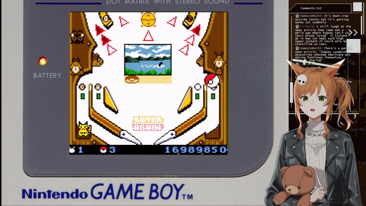 Hag dog Beni Bonni playing pokemon pinball on the game boy colorhttps://www.twitch.tv/benibonni