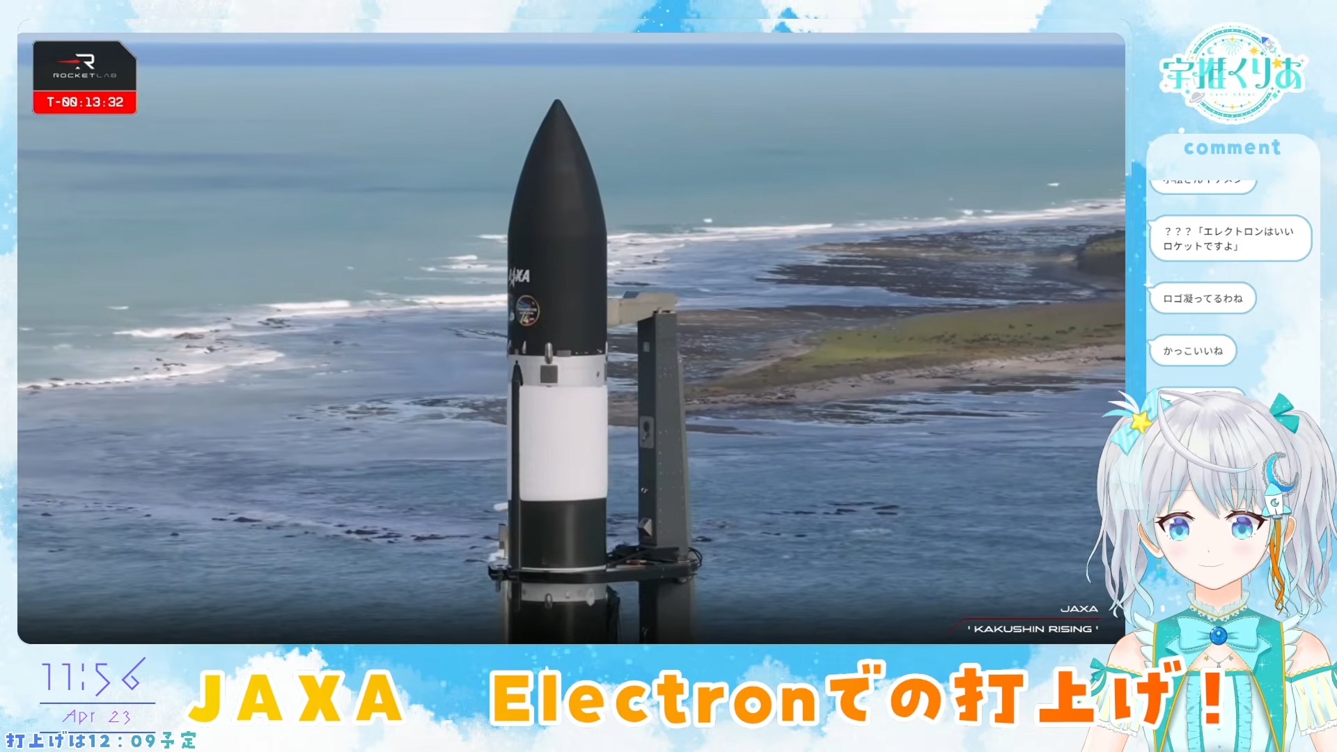 https://www.youtube.com/watch?v=GcaK5tbvwH0Cute rocket autist chuuba is streaming the Rocket Lab electron launch.