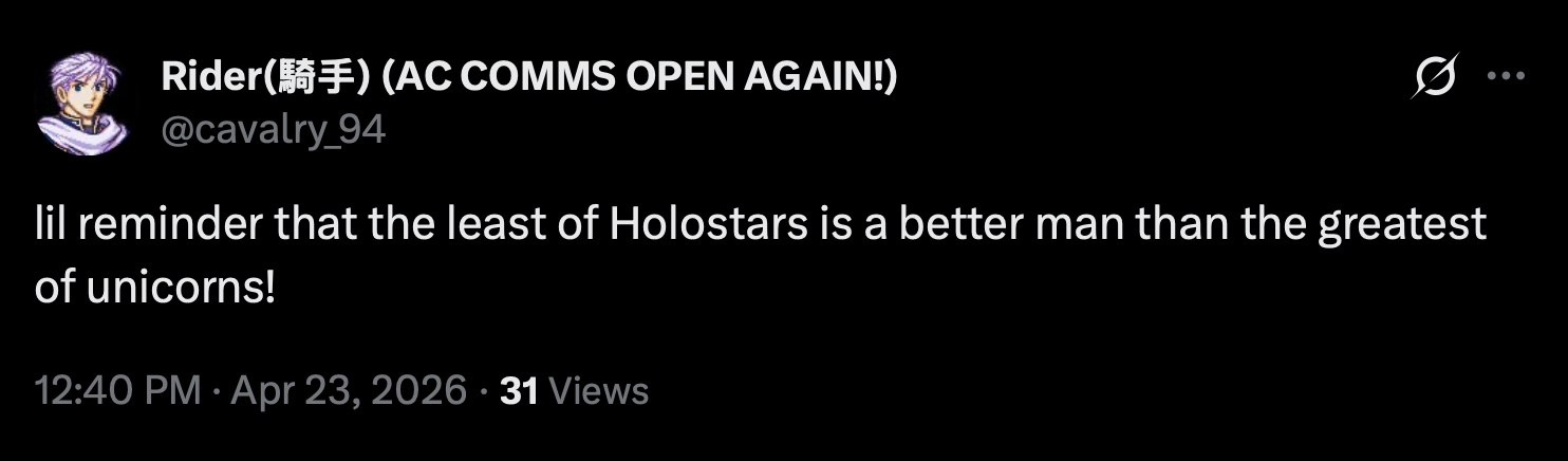 >>111308760i wish he slid this shit OP instead of the Kanata OP one. it feels disrespectful for the Queen of Unicorns.