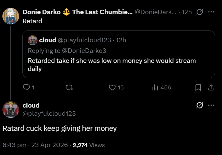 >>111317025yeah, he's just replying to everyone on twitter and calling them retarded because he secretly hates her