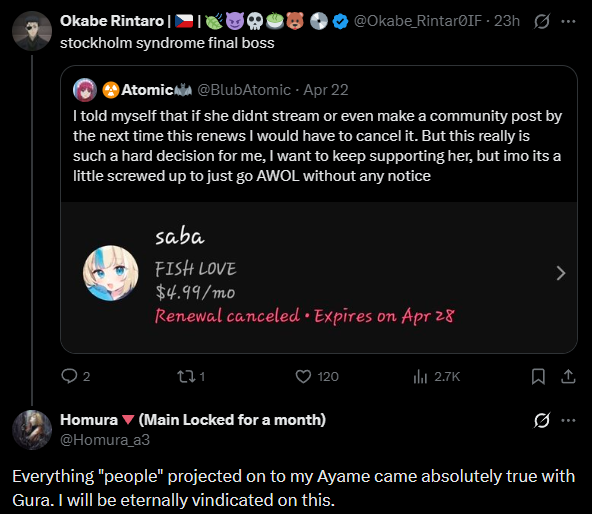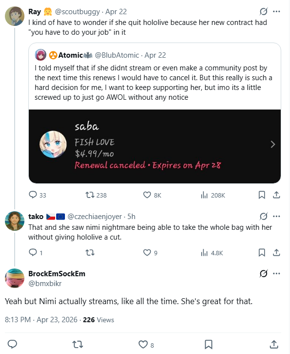 >>111319190I'm just concerned about Kiara, is all. This is not good for her career or her friendships in Hololive.