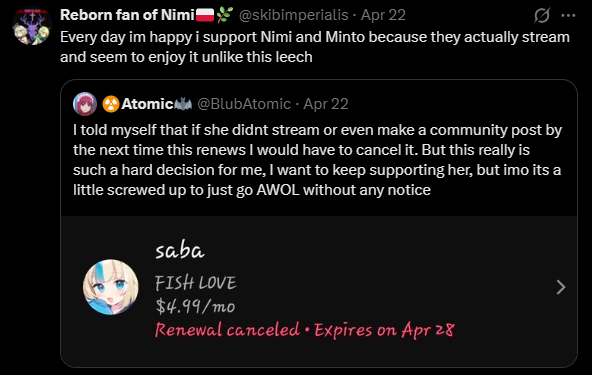 >>111319049Not at all. Nimi ignored her, like she does now. This is a strange one way thing.