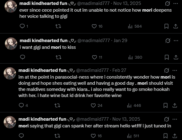 >>111319126lets be real Mori, Mumei, and Sana were as bad as those girls if not worse.