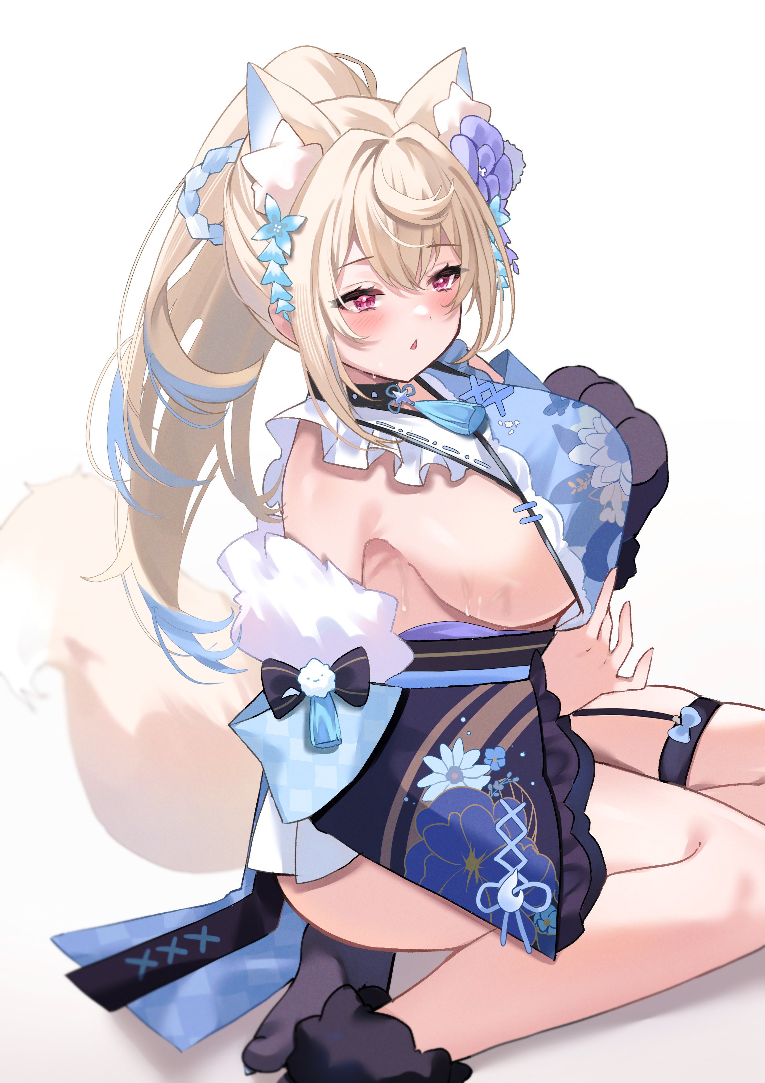 Fuwawa's body is so ultra erotic and fluffy that the clothes provided by the hospital can’t properly fit her
