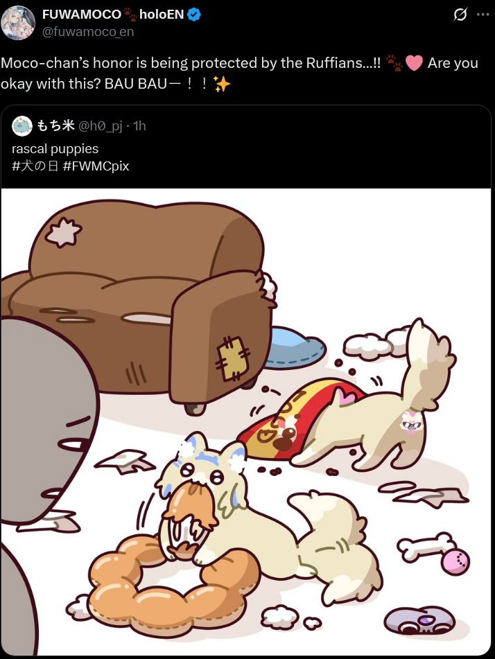 drawanon who did the Mococo smoothie art should make an update that shows Mococo smiling looking at Fuwawa who is entering the picture. Maybe just draw her shadow or her back to make it easier.
