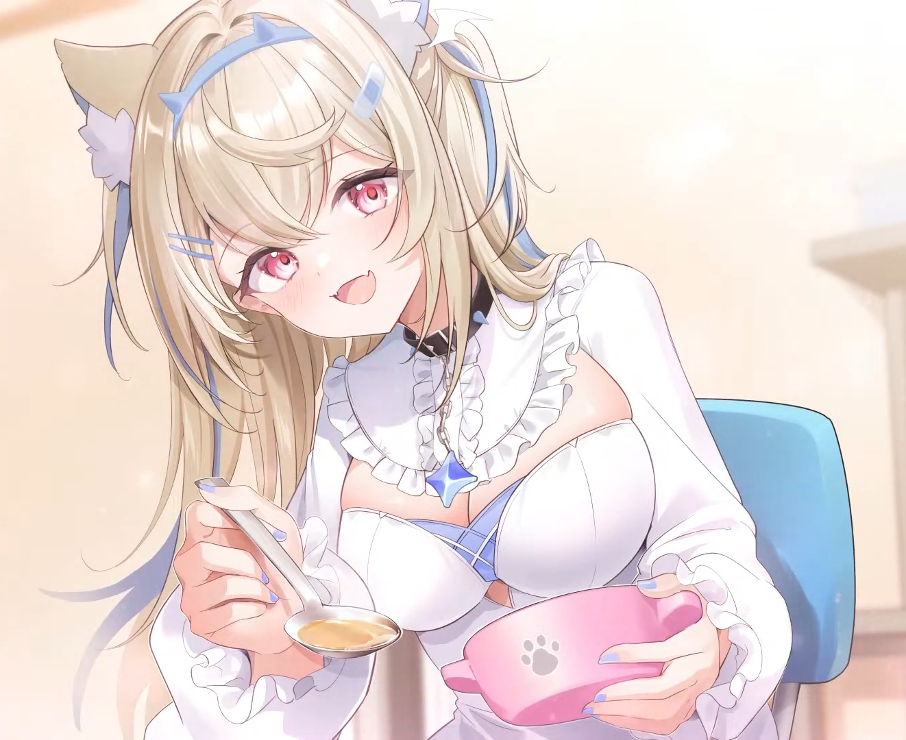 Fuwawa is making pancakes