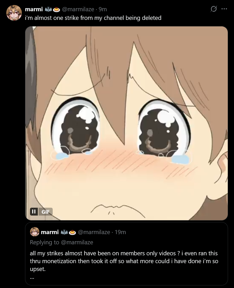 >>111360589There's a whole mainstream culture of chronically online people who actively seek out and call for the destruction of things they personally find distasteful, regardless of actual harm or legality of (thing).