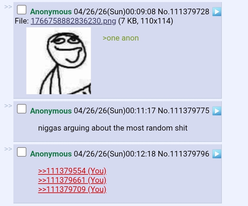 >>111379712It is one anon nigga wanna see? That anon is me. Notice better