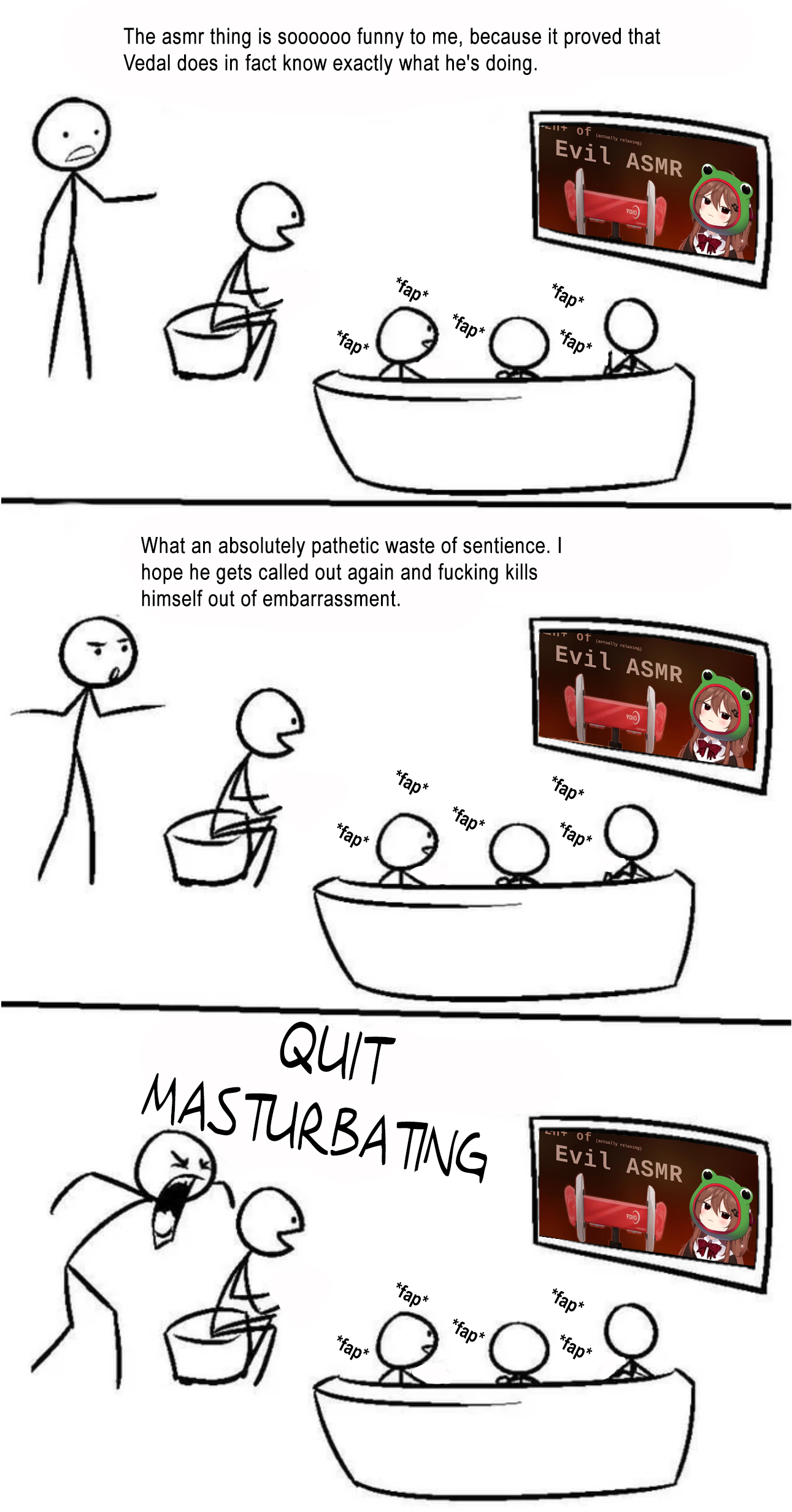 I'm still riding the high of me pissing someone off with my posts so much they made a whole comic about it. I've gotten off to it twice already (•̀ᴗ•́ )