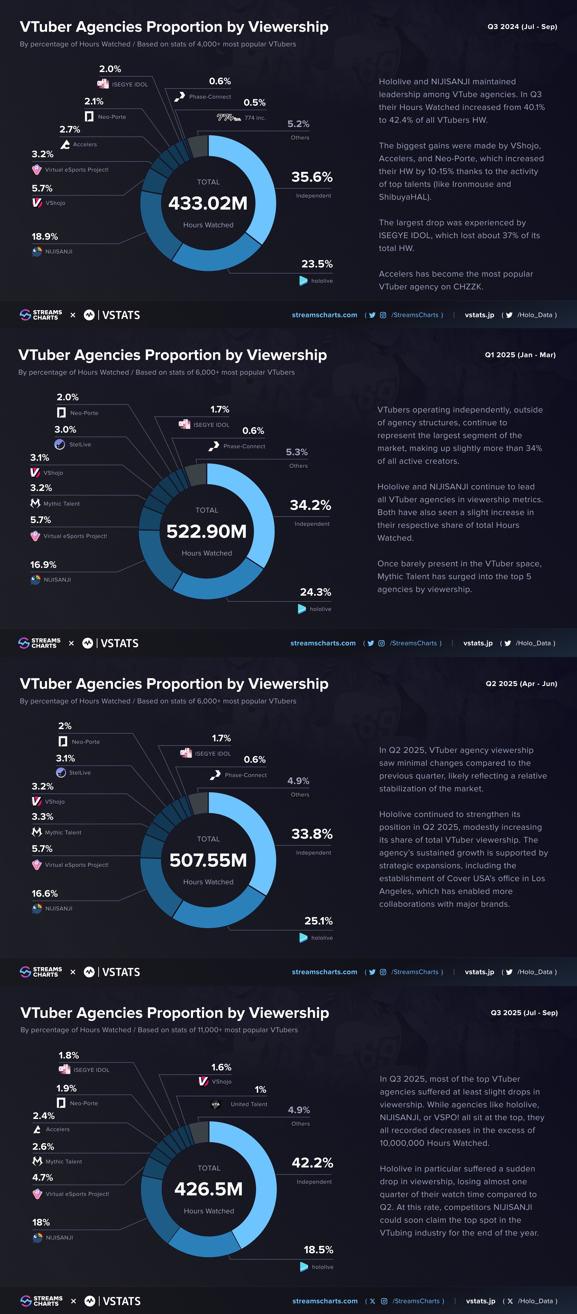 Q3 2025 had 426.5m watch hours. Of which, Hololive made up 18.5% of that total.