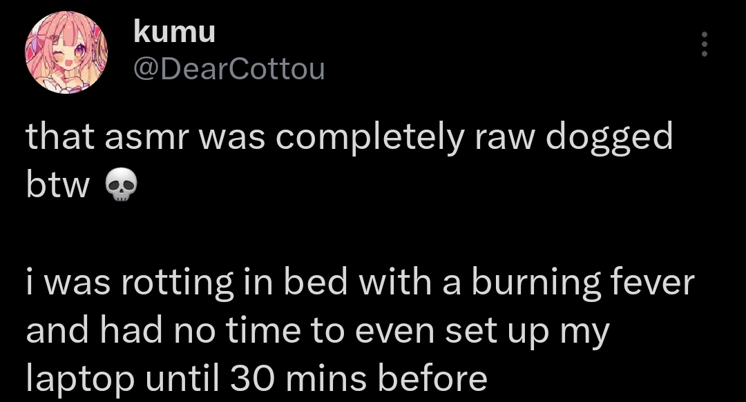 Kumu's katabasis ASMR made me realize I need more ASMR of girls calling me pathetic while also saying they can fix me