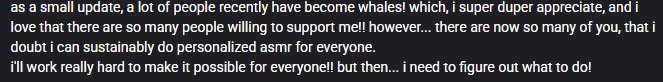 >>111390203she forgot to update the tiers, but whales get fleshposts and personalized asmr. she shared the updated tiers a while agobin a post b