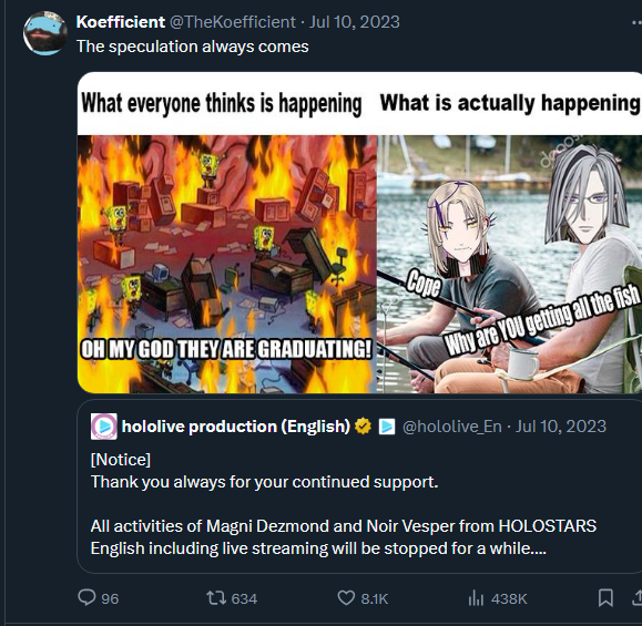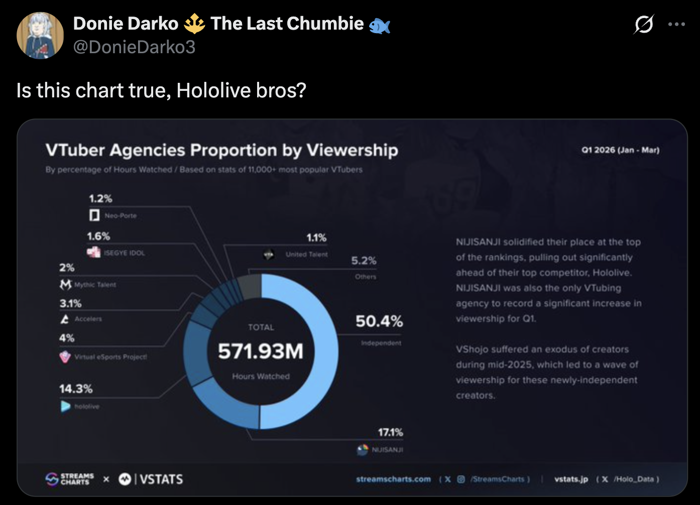>>111388510>engine died, exposing that Hololive is the only one with real viewers>sponsors start only going to themFtfy