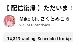 Miko has return in 2 hourshttps://www.youtube.com/watch?v=PgNsGoQhtRchttps://www.youtube.com/watch?v=PgNsGoQhtRchttps://www.youtube.com/watch?v=PgNsGoQhtRc