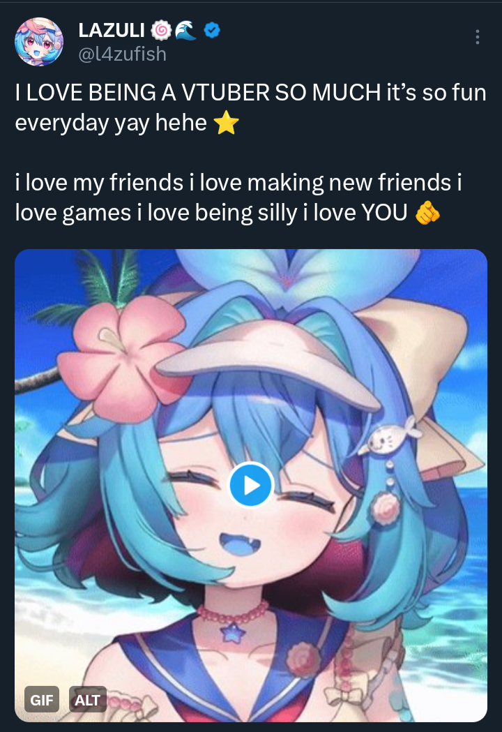 Good day! It’s Sunday, that means to confess your sins. I’ll go: Lately I’ve been get distracted by stupid click bait Apple texts stories next to Lazuli’s streams and I watch them for about 10 minutes when I could be watching her instead. They’re not even good