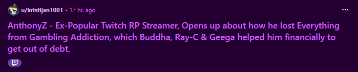 >>111421232He's really not the type you're describing there. He got famous during the No Pixel boom during lockdowns, dropped out high school, and started spending everything he made. Like he bought a Porshe before he had a drivers license. And he just kept spending like that even as the numbers fell and fell and then, when he was already in a bad place, started gambling. She also didn't give him all her money, or any close though. She helped him pay his rent for two months. It was barely over 20k.