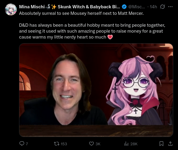 >>111454075In the good timeline, the original campaign was with him, not Arcadum, and it helps establish tabletop as a core part of what vtubers in general do.