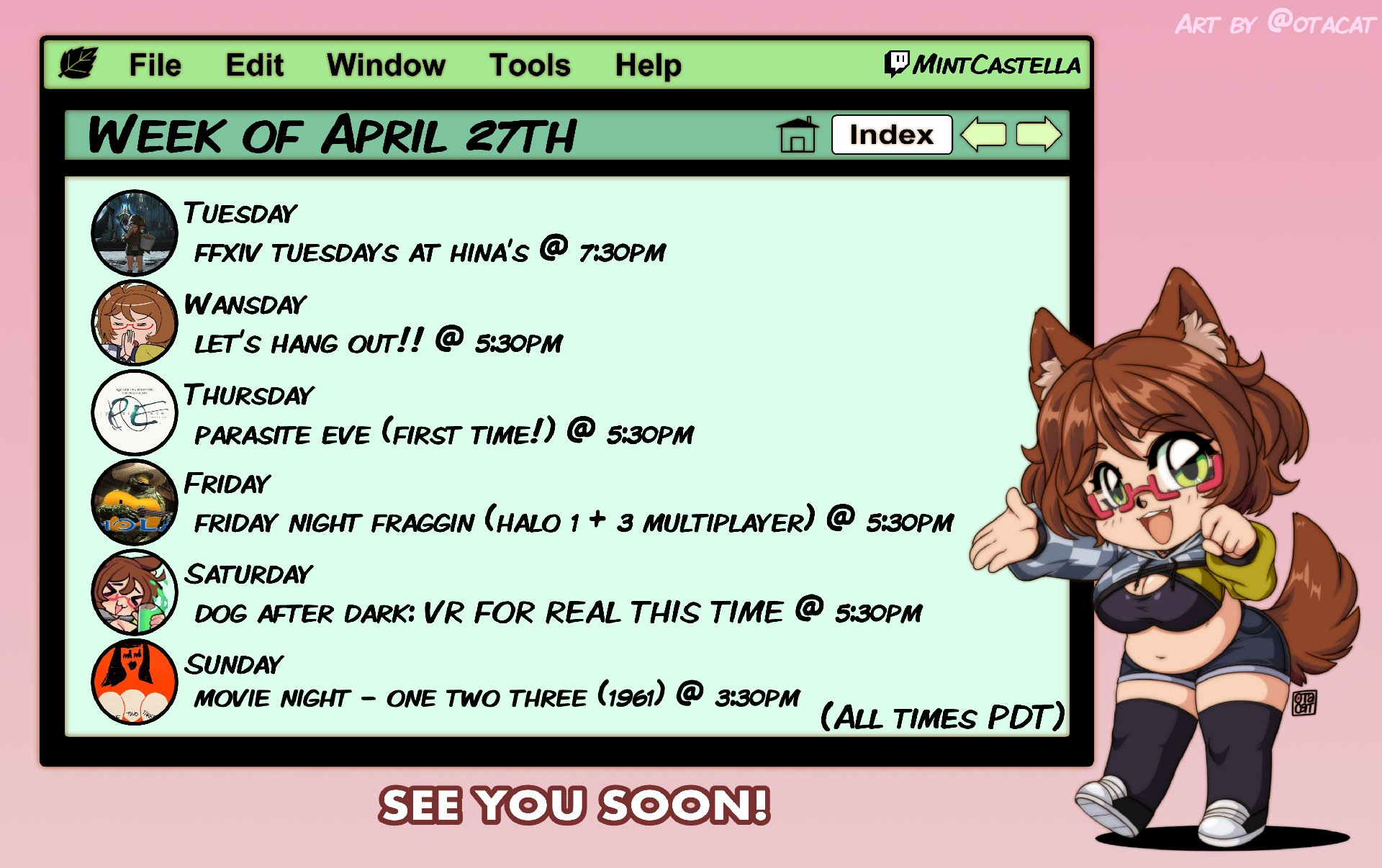 suck edition>What is /lig/?/lig/ is a thread for viewers to find, share, and discuss indie vtubers who have on average 500 viewers or more.>Why /lig/?Large indie vtubers have more net fans, but they are outnumbered by 2views by the thousands. This is a thread for the VIP, regardless of what language they stream on.>Can I shill my 499view oshi here?Considering averages fluctuate widely, all the way down to 100 is reasonable. The minimal requirement however is being Twitch partner or the YouTube equivalent in numbers.>Wait isn't that one a corpo?/lig/ is a thread for chuubas of a decent size who aren't defined by their corporate branding, either due to the small size of the corporation or the independence and lack of oversight granted to the talents>/lig/ Numbershttps://lignumbers.neocities.org/>Twitch Clips Guidehttps://pastelink.net/34vd5>VOD Archival Guidehttps://rentry.org/Vod_Archival_Guide>/lig/ VOD Archivehttps://rentry.org/Indie_Vod_Archives_lig_>Koikatsu cardshttps://mega.nz/folder/JYtkXJwL#07gAQCQqI_9FsmX9oQJKSA>/lig/ Wheel of Nameshttps://wheelofnames.com/5jh-93j>Tiermakerhttps://tiermaker.com/create/-lig--16586688-3>/lig/ Chuuba Birthday Calendar (WIP)https://www.canva.com/design/DAE-XgWodVg/ofLz4QC1yPPQ4T6TTAE0fw/edit?utm_content=DAE-XgWodVg>Upcoming BirthdaysMay 3rd - CharlottexBearMay 4th - Dya Rikku & ImakuniMay 6th - Nino EgynMay 14th - Peo YukinoshitaMay 17th - GrimmiMay 20th - ZentreyaMay 24th - FilianMay 29th - CottontailVAJune 1st - KyubaltJune 2nd - JuniperJune 4th - Anny>OC material for the OPhttps://mega.nz/folder/IIVD1IaJ#cfsRhWdJvzneIoG8HZUPuw>/lig/booruhttps://ligbooru.moe/>Duckshttps://www.twitch.tv/dashducksOther useful threads:>>>/vt//big/>>>/vt//corpo/>>>/vt//choc/>>>/vt//flip/>>>/vt//haha/>>>/vt//indie/>>>/vt//mint/>>>/vt//vrt/>>>/vt//xvsj+/Previous Thread: >>111458324