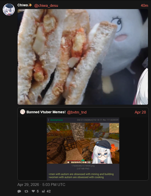 I hate bat so I expect all vtubers to hate bat too. If they say they like bat, it's performative