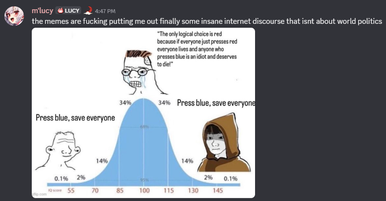 Lucy is losing her mind over people that would press the red button