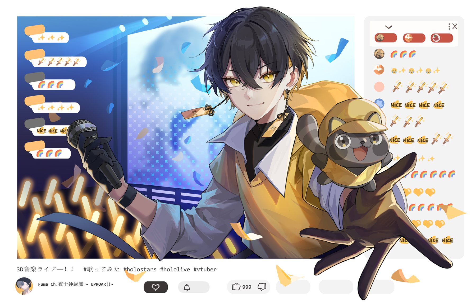 >Roberu has the Holostars logo and name on his new outfitDoes he love them or hate them?