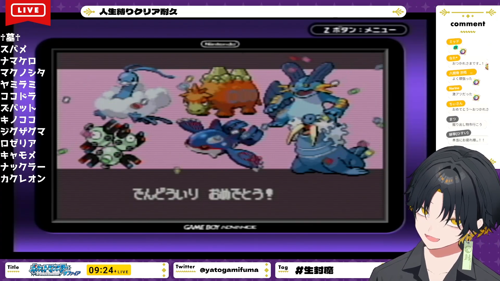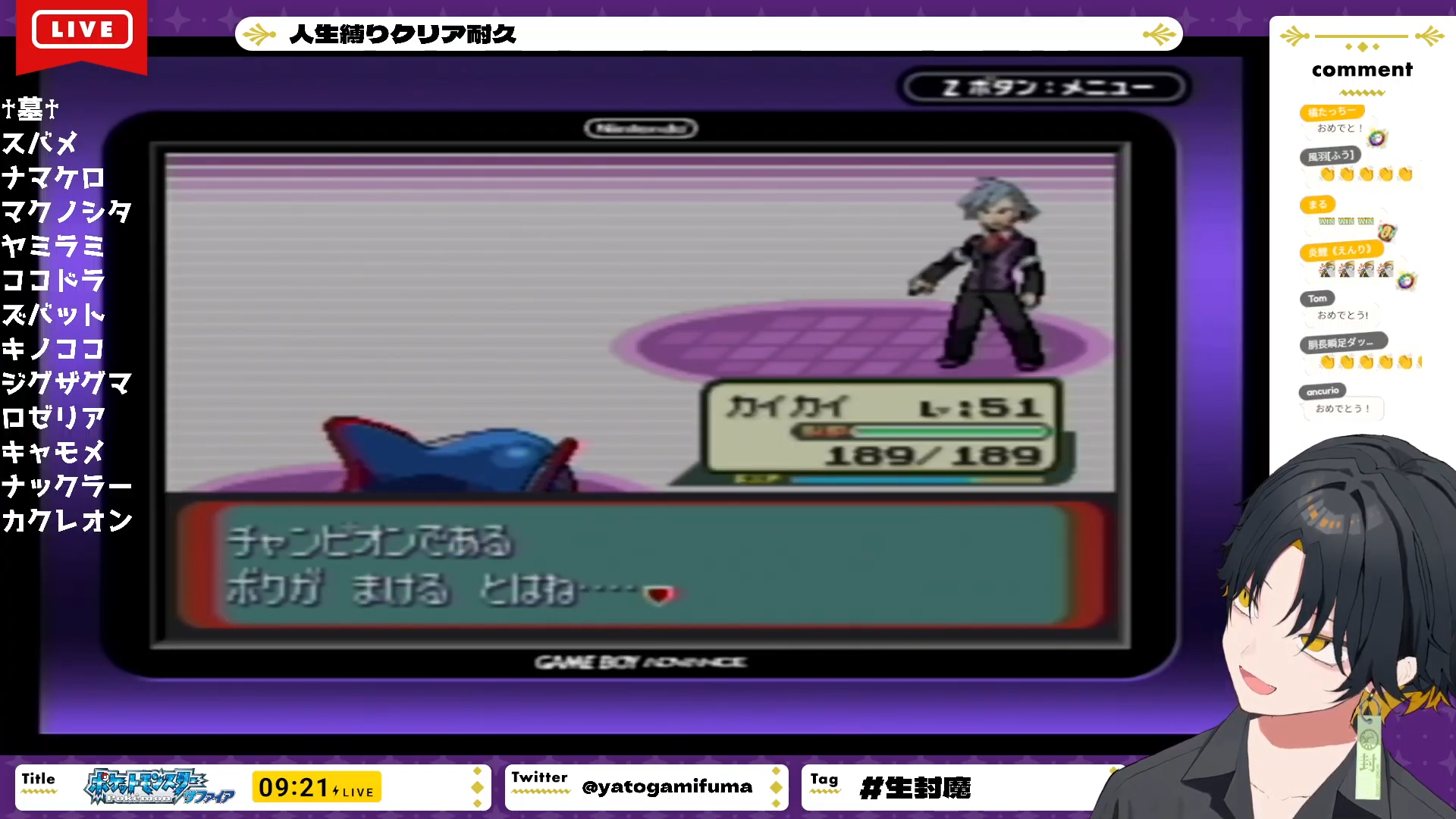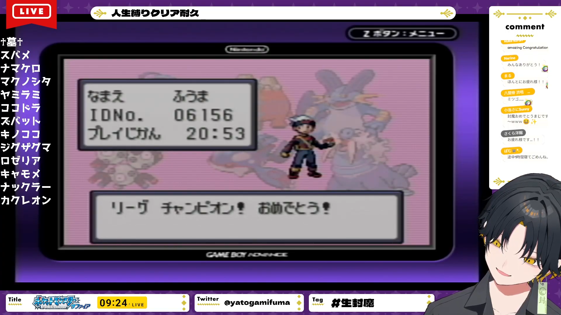 Fuma defeated all the gym leaders! and no new deaths since the new frame started.