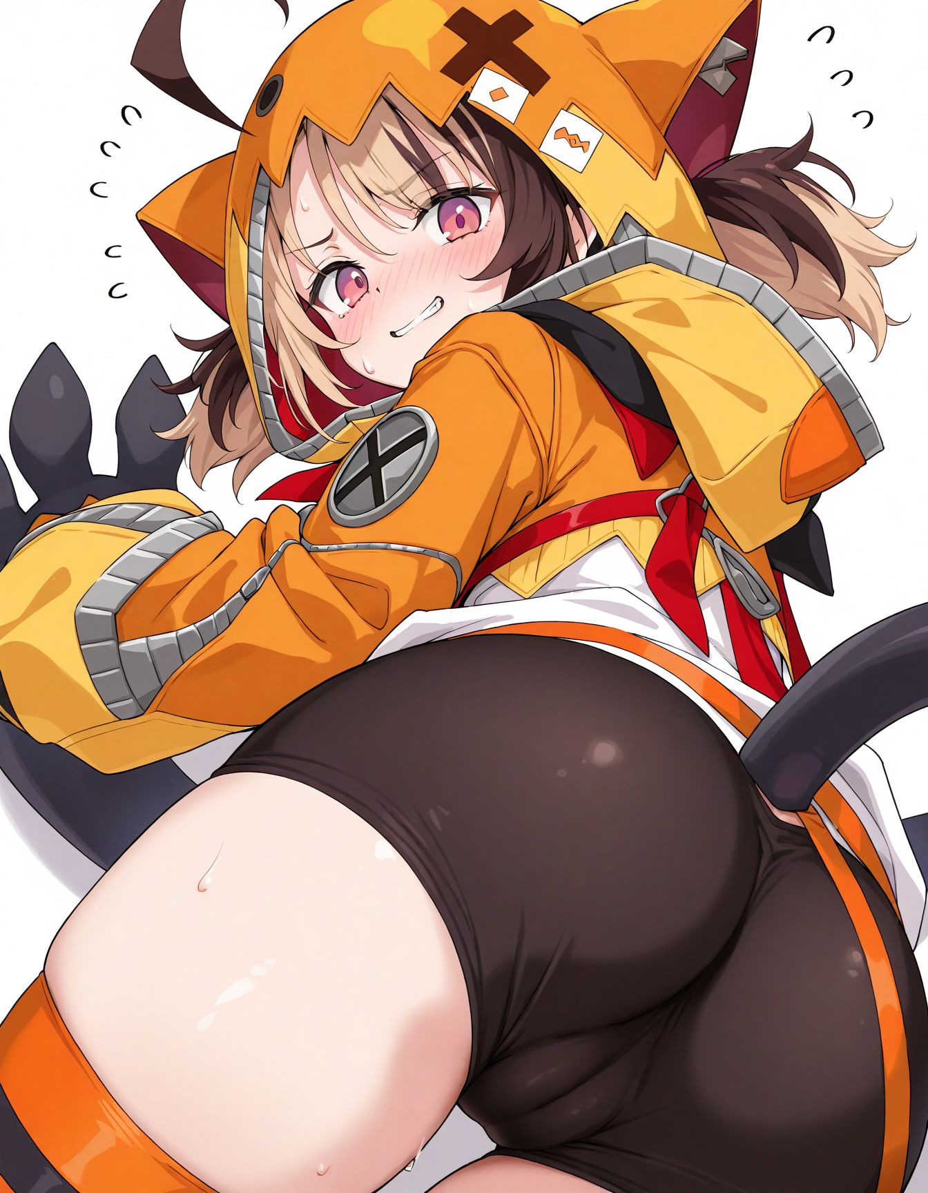 glistening sweat running down gigi's spats