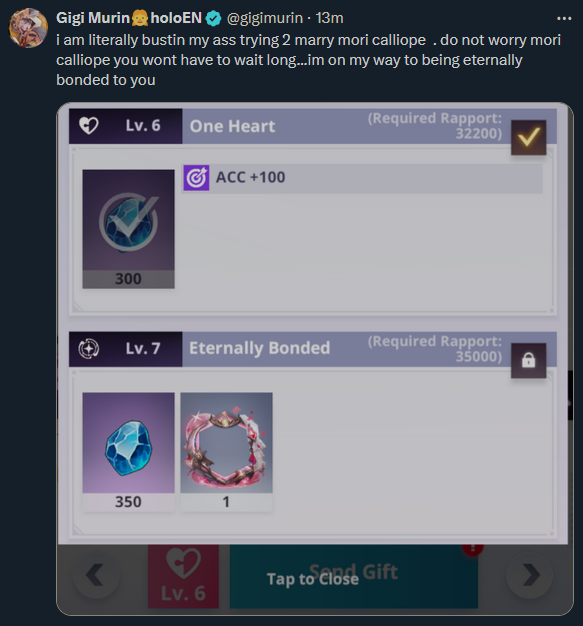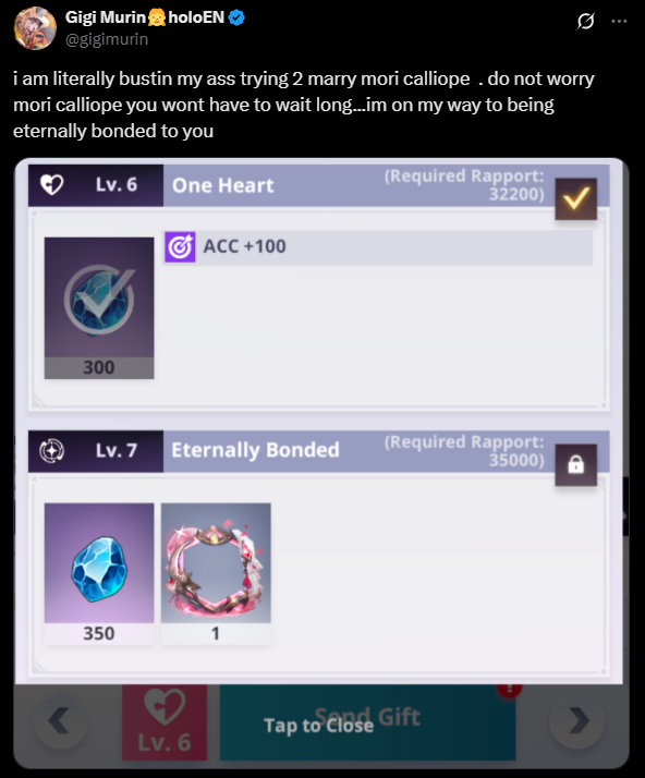 Has Gigi ever hinted at who her oshi is? I've been watching her since day one but I only remember her gushing over Gura during BD also MORI CALLIOPE