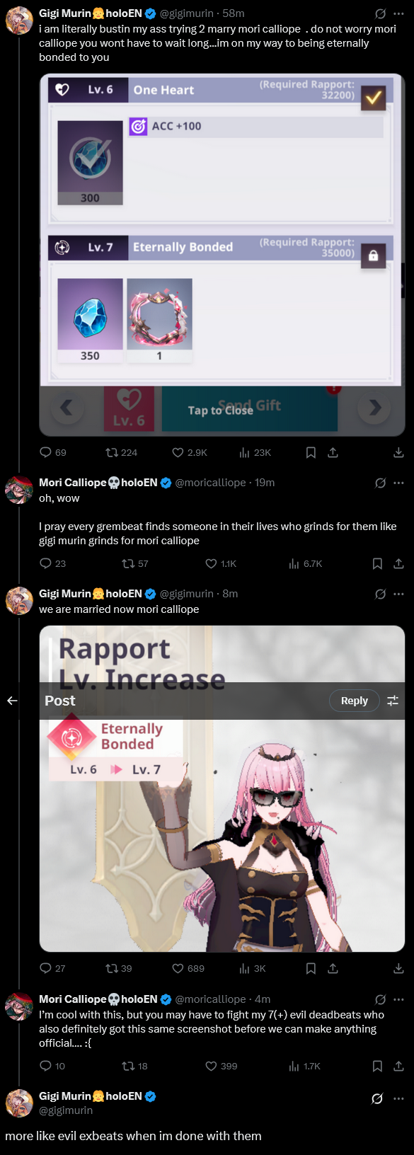 Kogal gremlin>Recent StreamsWild Assault: https://www.youtube.com/watch?v=xyRXJ44Z8JIBlood Typers collab with Ina: https://www.youtube.com/watch?v=roFNVs40MHQFallout New Vegas: https://www.youtube.com/watch?v=mTyPGI1LbS0Alien Isolation collab with Mori (on Mori's channel): https://www.youtube.com/watch?v=1tmWY14Fy0oThe Chef's Shift: https://www.youtube.com/watch?v=upHGRmE4HqE>SongsKyu-kurarin Cover: https://www.youtube.com/watch?v=t3tIj88yzLMSnow Halation Cover ft. Justice: https://www.youtube.com/watch?v=tBzZss_kh_0Hai Yorokonde Cover: https://www.youtube.com/watch?v=ZEdbSuoF7uMABOVE BELOW -Far East Remix-: https://www.youtube.com/watch?v=QDhCNXYgdJcMatryoshka Cover: https://www.youtube.com/watch?v=ILpEFrK1F5IIgaku Cover: https://www.youtube.com/watch?v=B_N1uEAHk10Hitomania Cover: https://www.youtube.com/watch?v=bmT_cEfOTJEABOVE BELOW: https://www.youtube.com/watch?v=ilLEj-SCCn8Spring Revelry Voice Pack: https://shop.hololivepro.com/en/products/hololiveen_springrevelry_voiceENigmatic Recollection - Shenanigans in Libestal Voice Pack: https://shop.hololivepro.com/en/products/hololiveen_enigmaticrecollection_shenanigansinlibestalNoises! Voice Pack: https://shop.hololivepro.com/en/products/hololive_noisesHolodetective Voice Pack: https://shop.hololivepro.com/en/products/hololive_holodetectiveValentine's Voice Pack 2025 ~Secret Confession~: https://shop.hololivepro.com/en/products/hololive_valentinevoice2025>DebutLore Video: https://www.youtube.com/watch?v=qllhhLELbP4Collab: https://www.youtube.com/watch?v=j89Phi0oom8Stream: https://www.youtube.com/watch?v=15aufXwBIKwTeaser: https://www.youtube.com/watch?v=sF4g-50fLz8>LinksYouTube: https://www.youtube.com/@holoen_gigimurinXitter: https://x.com/gigimurinMerch: https://shop.hololivepro.com/collections/gigimurin>HashtagsArts: #rkggk https://x.com/hashtag/rkggkLive: #LFGIGI https://x.com/hashtag/LFGIGIPrevious: >>99116726