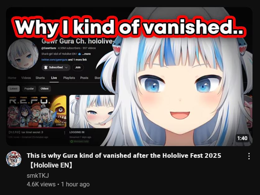 >>99274660>"Anyone have anythinh else to announce?">Gura:"Not yet."yeeeeah, it's over. That gave me flashbacks to that mori mario party collab with Coco, where she said "come watch my stream later, it's very important", then dropped the graduation announcement. It's gurover.
