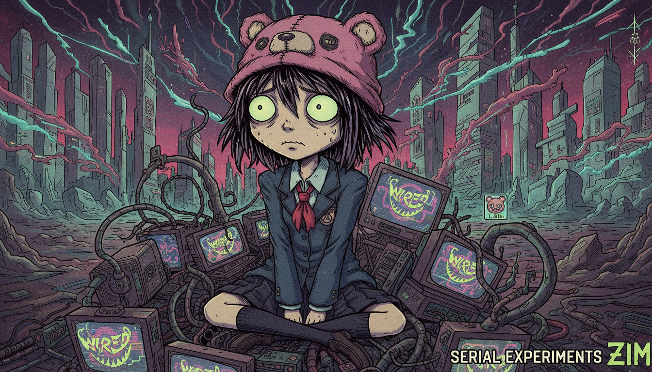 i tried a few times to get AI to spit out an invader zim aesthetic/style Lain image but it gives a more superjail look.any prompt wizards help an anon out?
