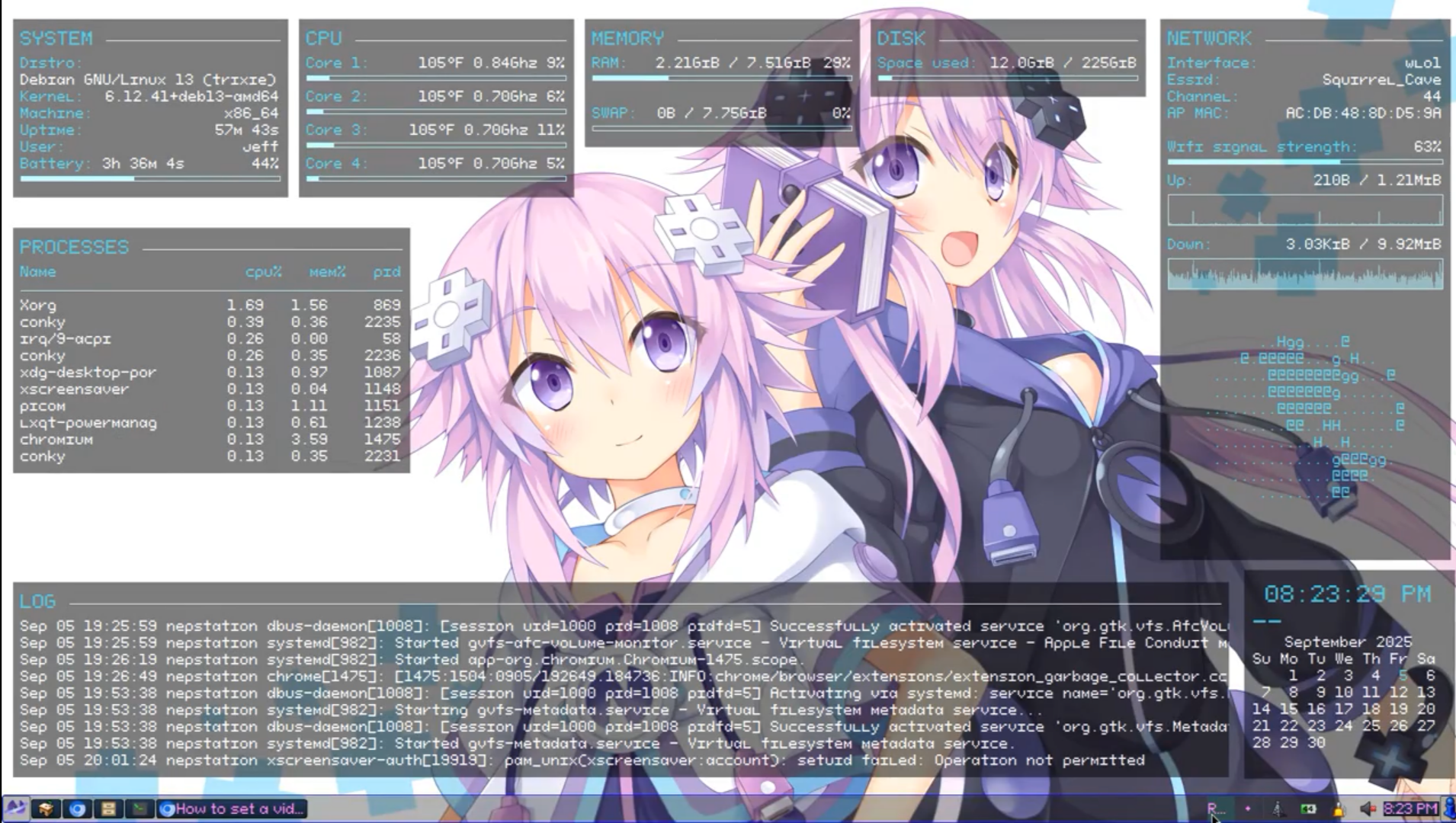 >>2266307And the Conky. Here it is running:>https://streamable.com/hkobjr