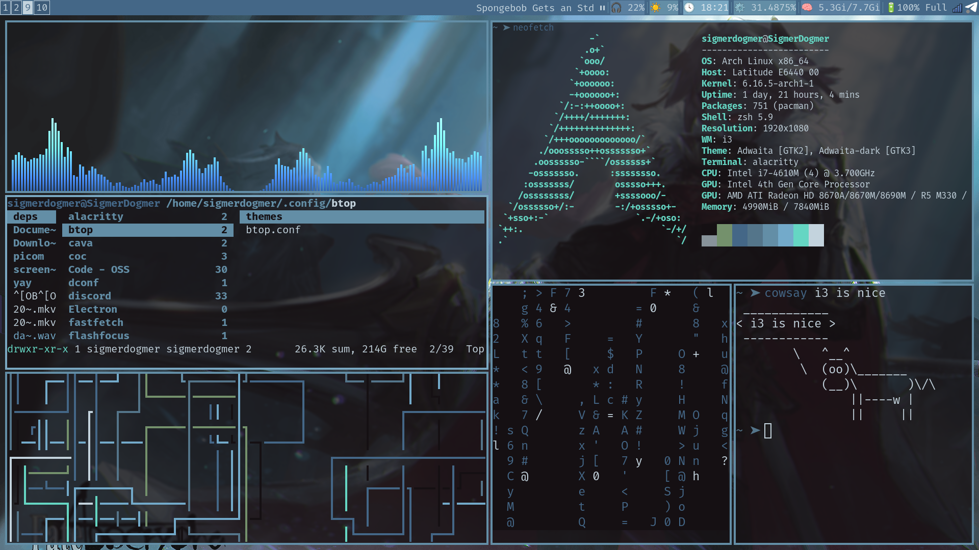 I want to showcase my gaps when I take a screenshot but I don't know what other windows to open besides neofetch and htop, any suggestions ?