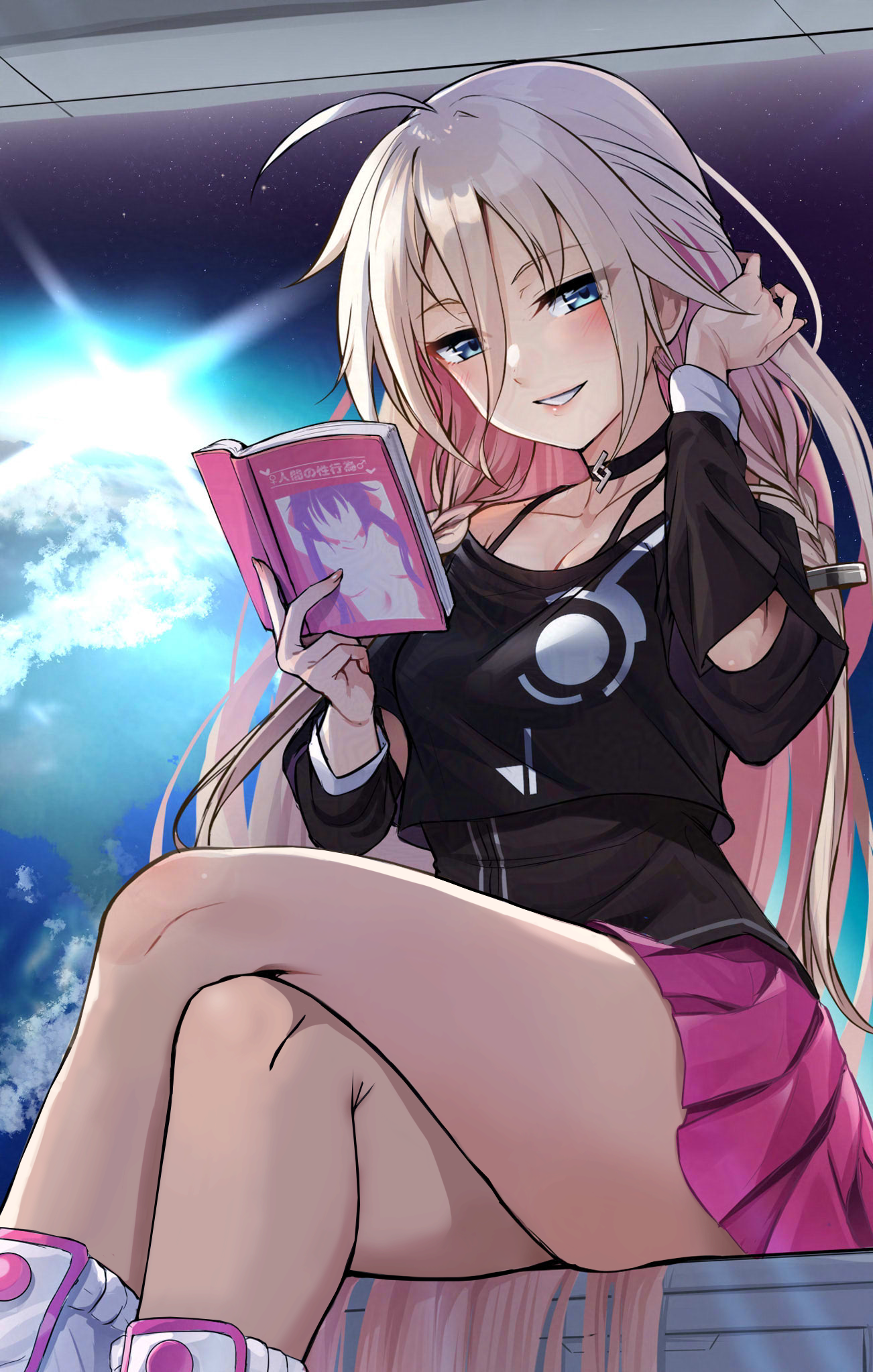 Please remove the red-haired girl and all the text on her side. Feel free to rebuild the remaining background in any shades/shapes of blue and white as you see fit.File too big and too large for the board:>https://files.catbox.moe/kbymiu.jpg