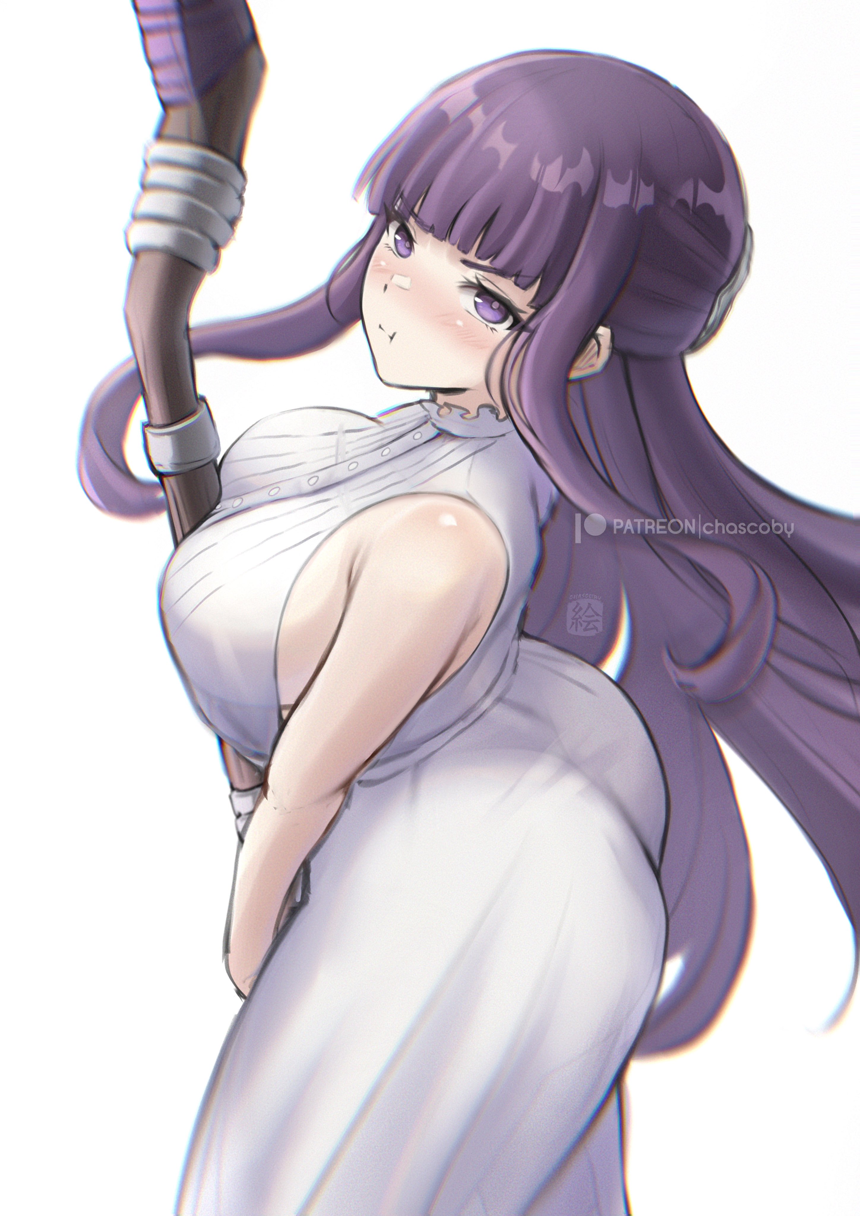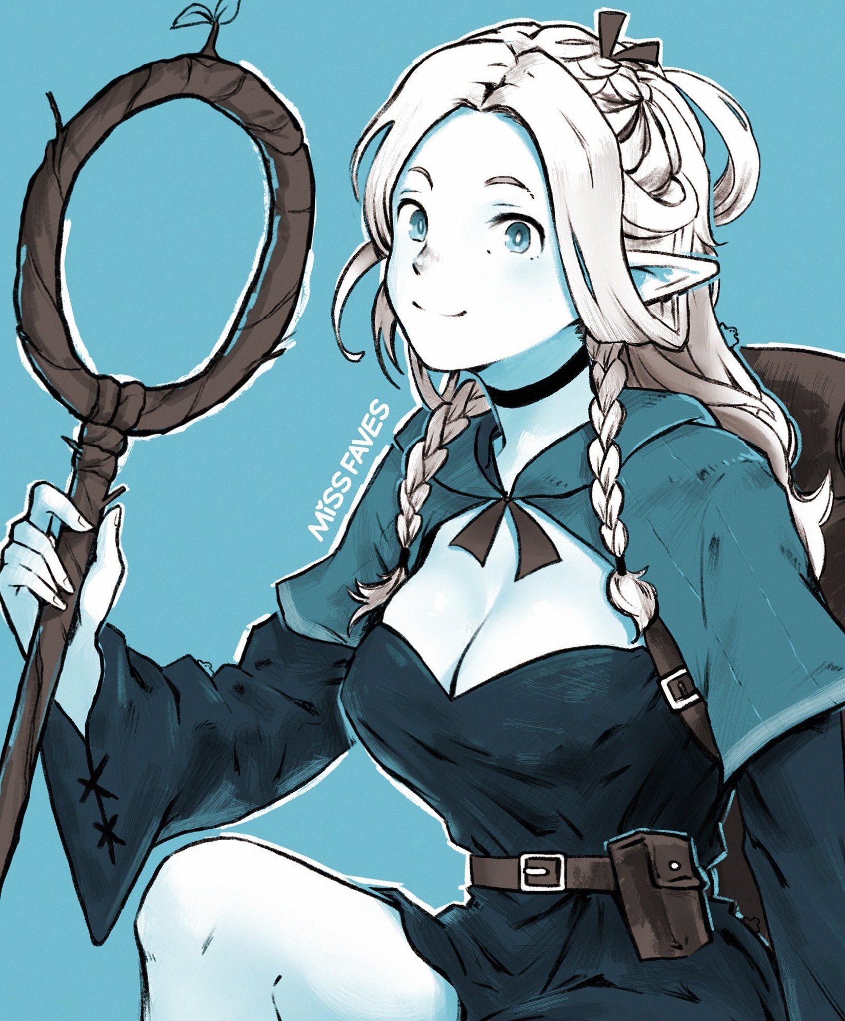 Hi, could someone please complete her hand, staff and the leaf, and then extend the background to the left to make a 16:9 wallpaper? Thanks in advance anons