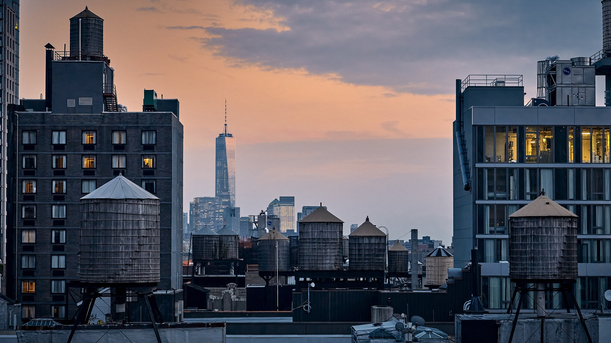An urban view from above. Ideally from old brick apartments and buildings in NYC but skyscrapers are also welcome.