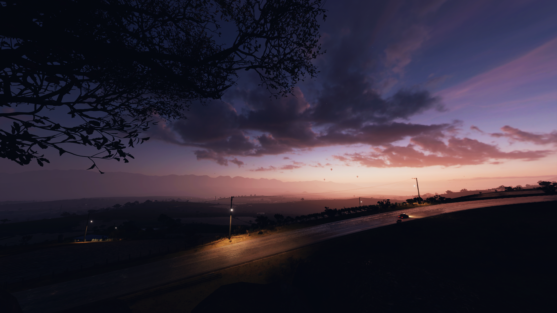 As per the title. Purple, deep blue, indigo etc. skies also encouraged. Try to avoid animated. NSFW only if tasteful. Basically anything you could stick a 10 hour loop of home - resonance over and have a good time.