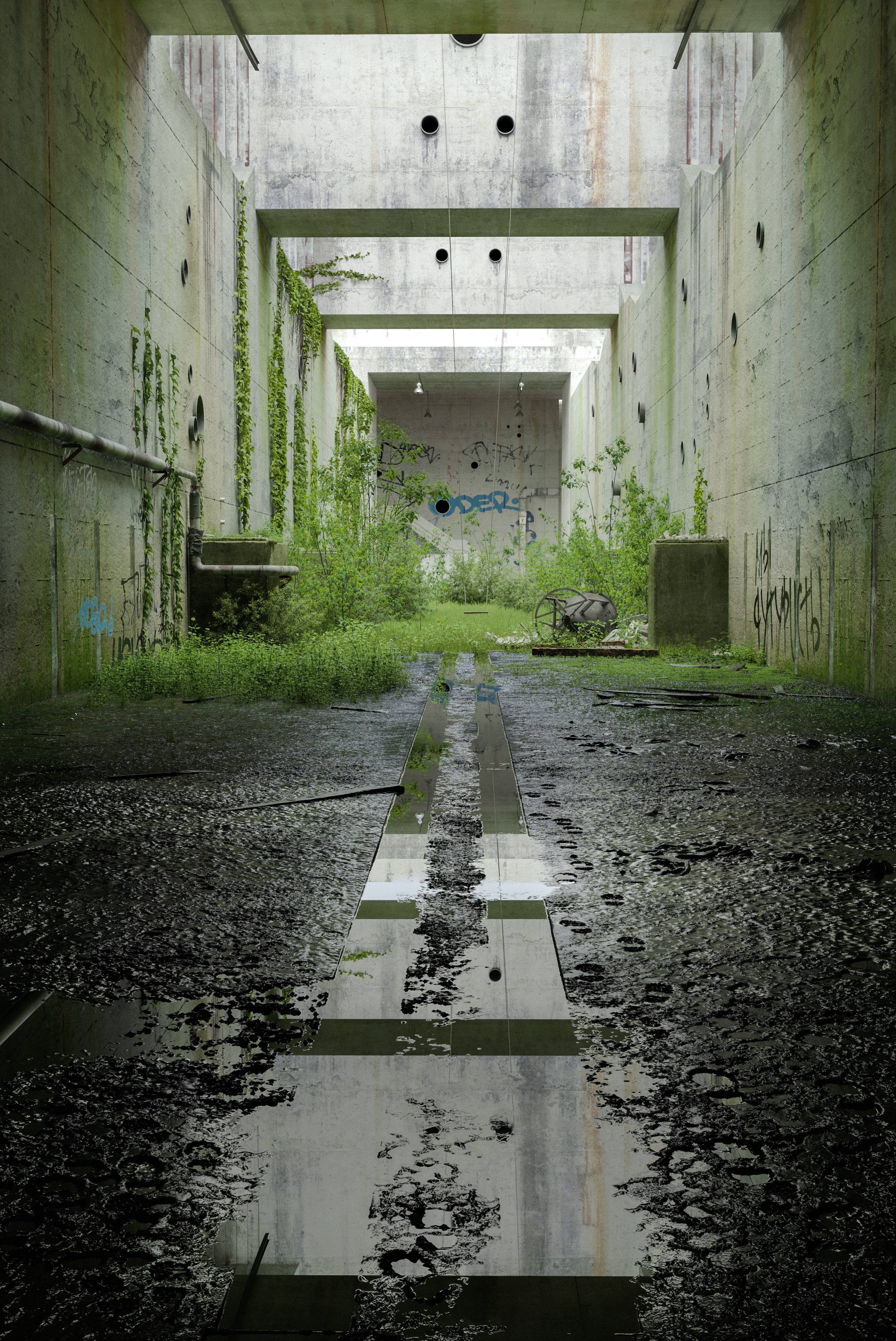 a post-apocalyptic world would look very green and comfy indeed, much like abandoned buildings in a rural area look today
