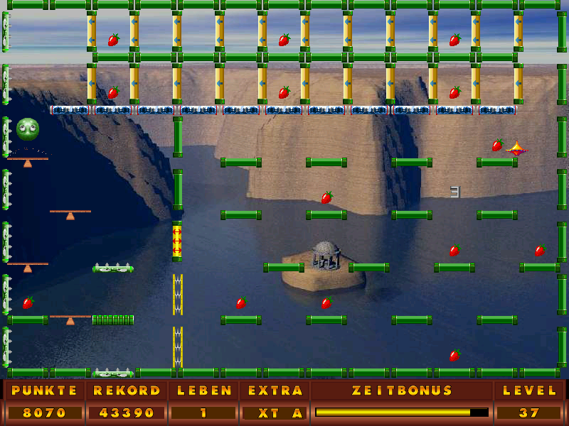 One of my childhood games was the demo of this German PC game called 'Bump Over'.