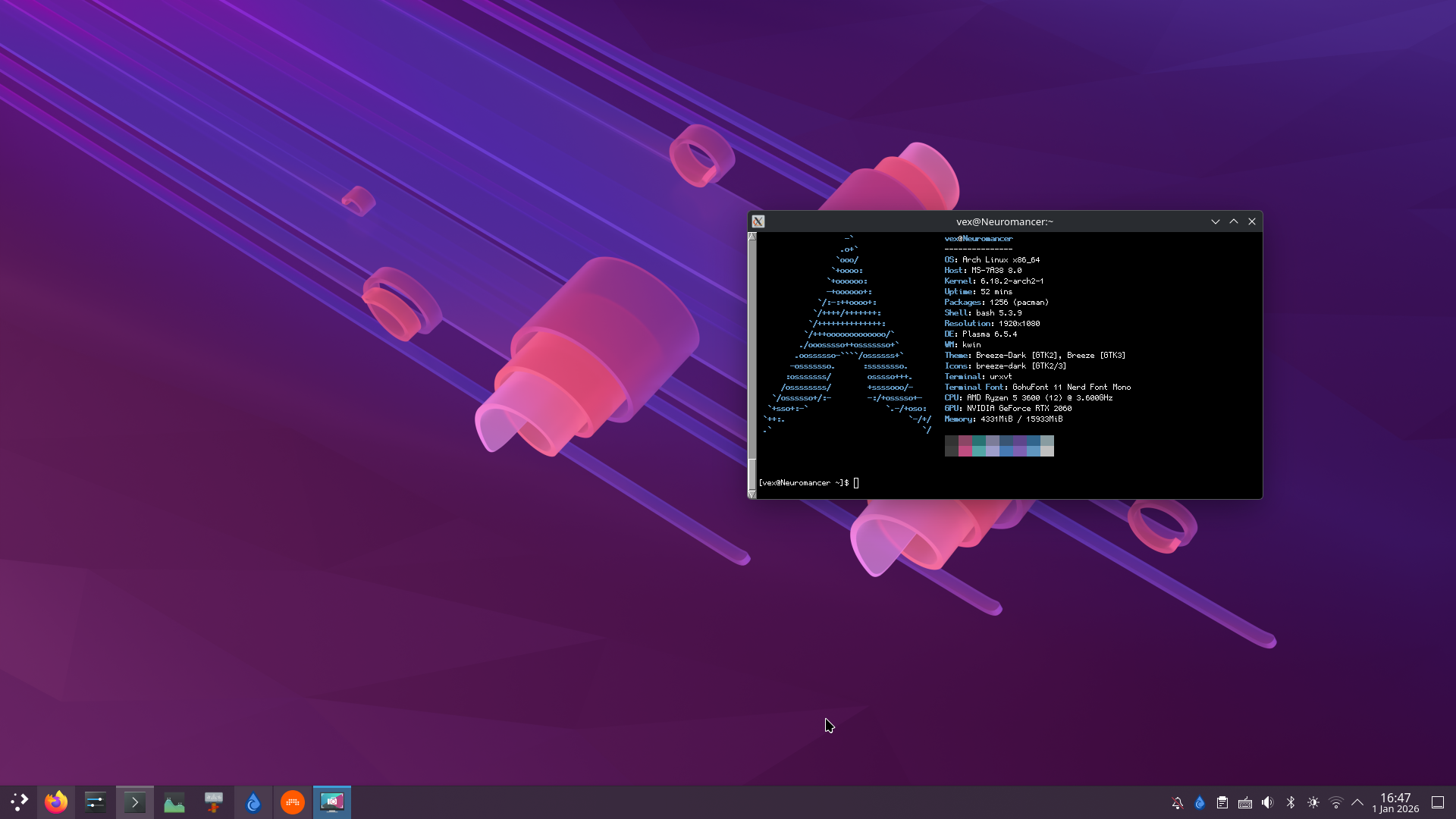 >>8098945love what you've done with the window decorations and the taskbar. Plasma is very flexible but I rarely see anyone going for something that isn't plain or retro looking.Are you using panel colorizer? Are the window decorations just a theme or is it something like klassy?