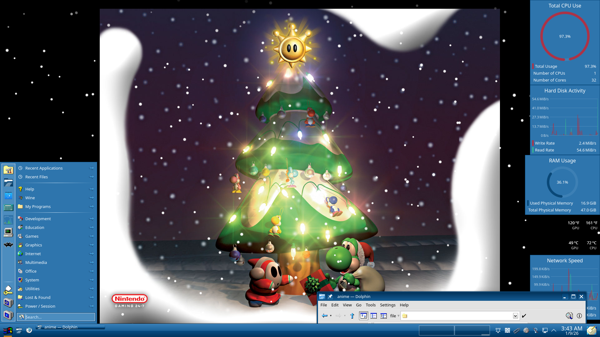 Slowly getting more used to linux.The wallpaper is a slideshow of a bunch of lewd pics i saved from threads here.