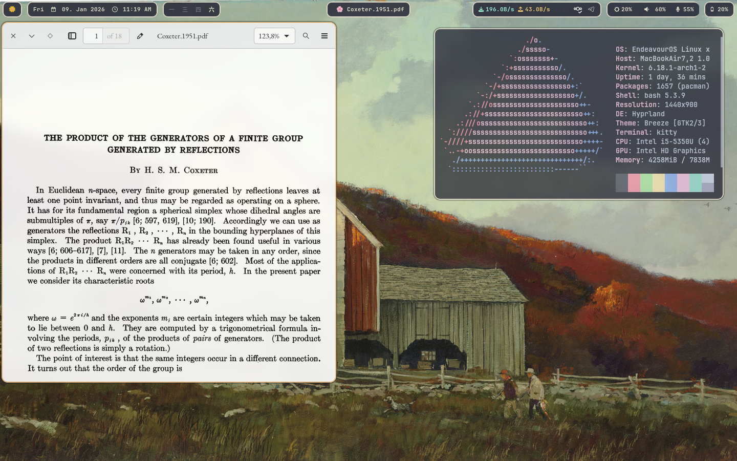 switched to hyprland from kde about a week or two ago, still don't have everything perfectly how i'd like but it's getting close